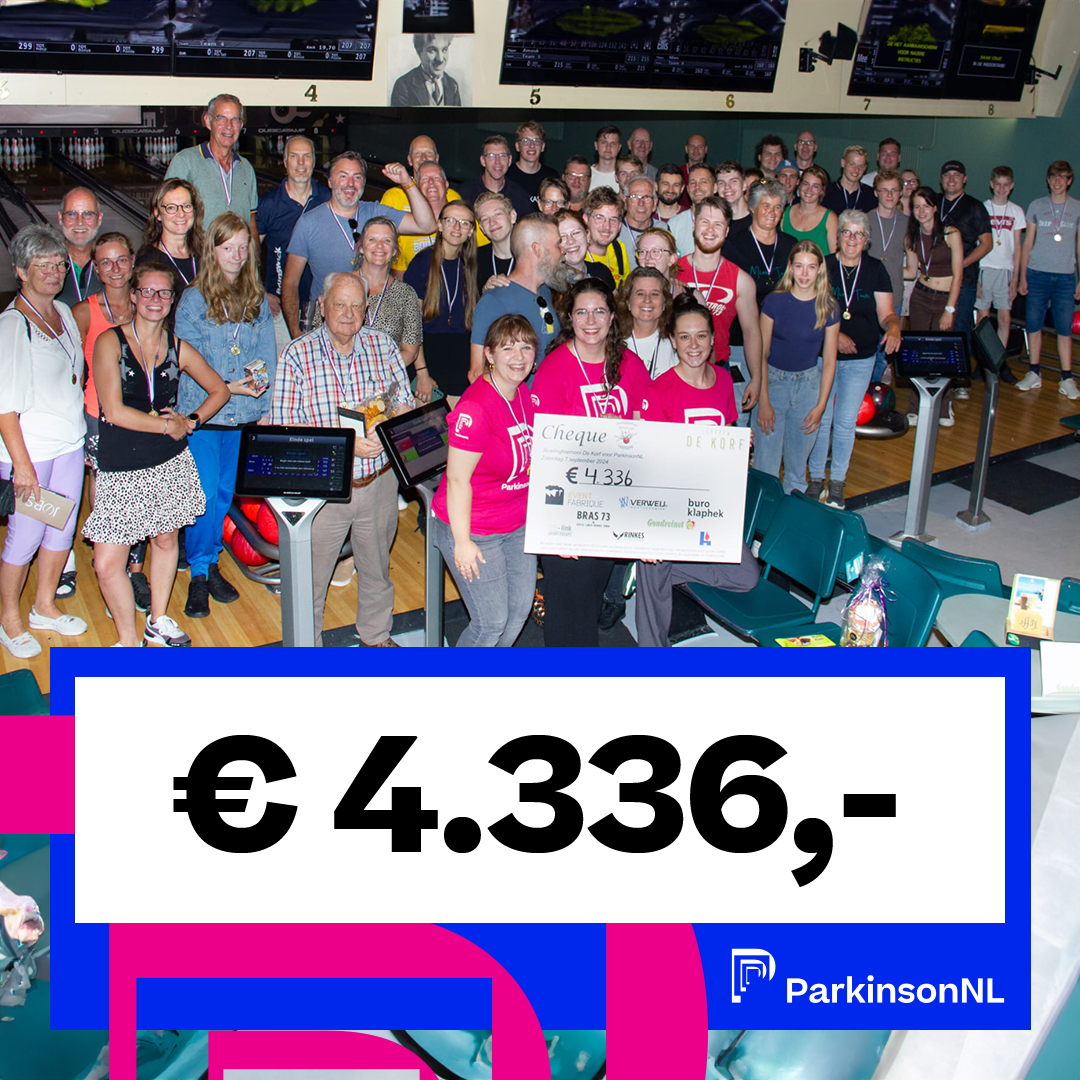 Lisa, Robin en Camille hebben op 7 september – speciaal voor ParkinsonNL – een bowlingtoernooi georganiseerd. De deelnemers hebben in teams van twee personen 1,5 uur lang gebowld. Aan het bowlingtoernooi was ook een loterij gekoppeld: met de gekochte lootjes konden leuke prijsjes gewonnen worden. Een succesvolle en gezellige dag met een mooie opbrengst!