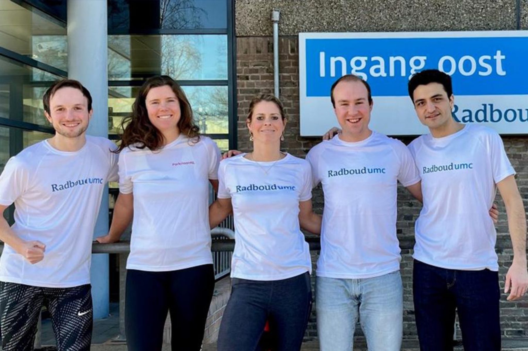 Wat bijzonder is, is dat één van de lopers, Annelien Oosterbaan, (nu 39 jaar en in het midden op de foto) al sinds haar 33e de ziekte van Parkinson heeft. Zij ervaart dus zelf dagelijks de gevolgen van de ziekte. Annelien was gynaecoloog en is nu verzekeringsarts en arts-onderzoeker voor de afdeling neurologie in het Radboud UMC. Ze is moeder van vier jonge kinderen. Haar vader heeft ook parkinson, dus ze loopt ook voor hem. Ondertussen doet ze onderzoek naar de ziekte bij (jonge) vrouwen. Strijdbaar, positief en bomvol levenslust, dat is ze. ‘Het leven is gewoon te mooi om te gaan zitten kniezen. En als ik in actie kan komen, dan doe ik dat vol overgave. En hoe fantastisch is het dan om dit samen met mijn collega’s uit het Radboud UMC te doen!’