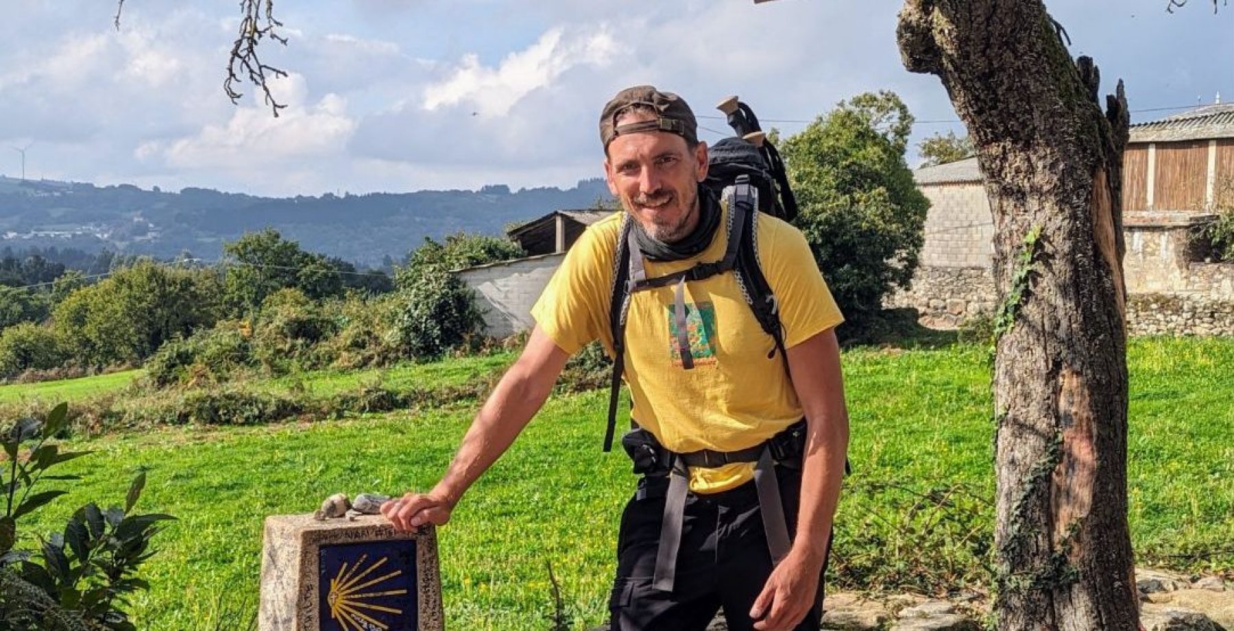 ‘Anderhalf jaar geleden kreeg ik de diagnose parkinson. Al snel hoorde ik dat bewegen een goede manier is om de progressie te vertragen. Op een dag dacht ik terug aan onze vakantie in het noorden van Spanje. Daar zag ik mensen met een rugzak lopen. Toen dacht ik: dat kan ik ook. Al snel besloot ik (na overleg met mijn verloofde) dit ook te gaan doen. Het is een laagdrempelige manier om in beweging te komen en ik houd wel van een uitdaging. Ook geeft de tocht mij de tijd om na te denken,’ vertelt hij.