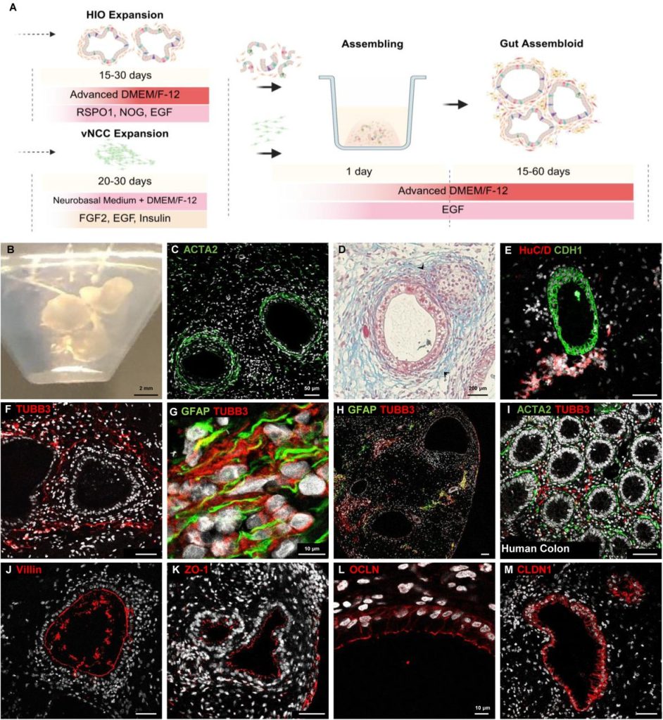 De ontwikkelde minidarmen met zenuwcellen in kwestie.