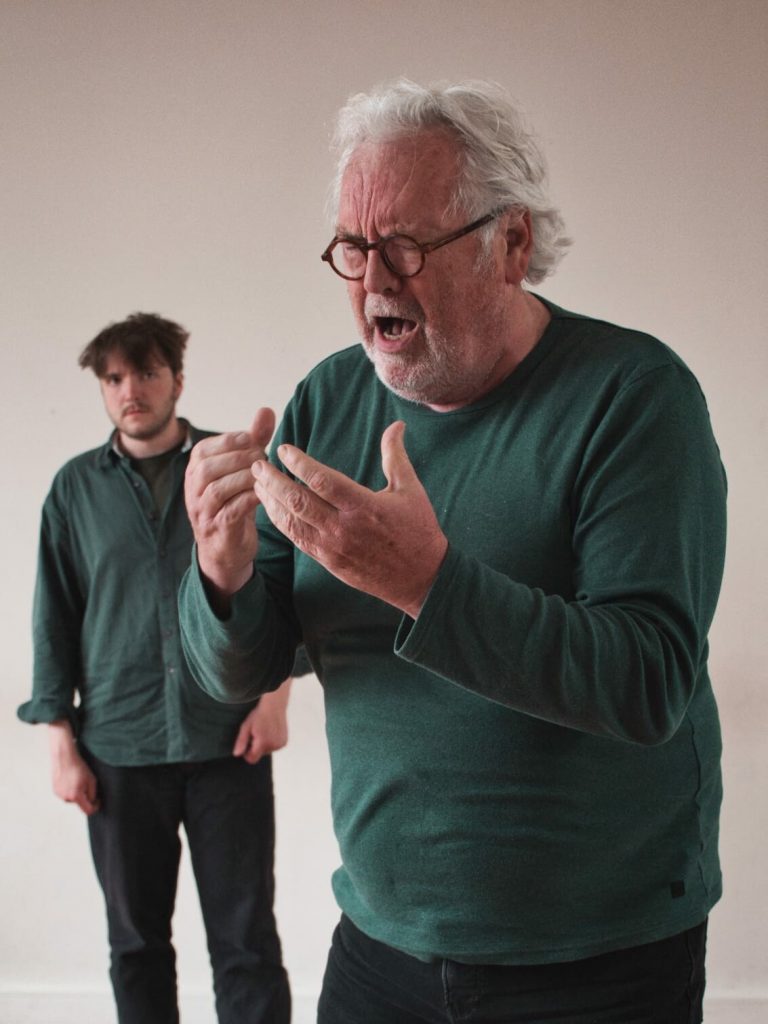Roán ten Cate en Ernst Daniël Smid tijdens de repetities van het theaterstuk Smelt